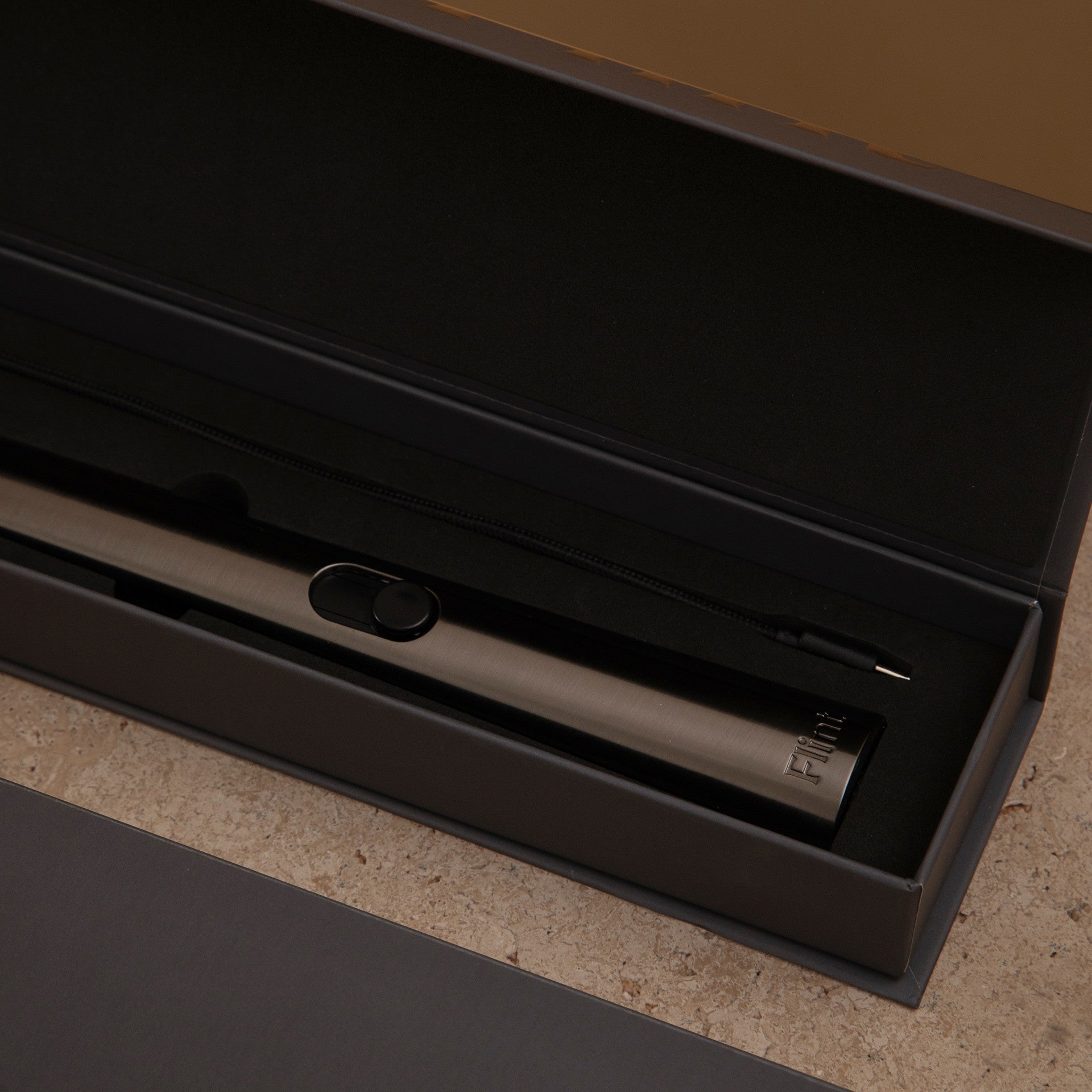 The elegant Flint isn't just any old lighter - it's a lighter that is equal parts functional, sustainable and very beautiful. This new Flint is even sleeker, the charge lasts five times longer, it comes in a smart box with a type c USB charger.