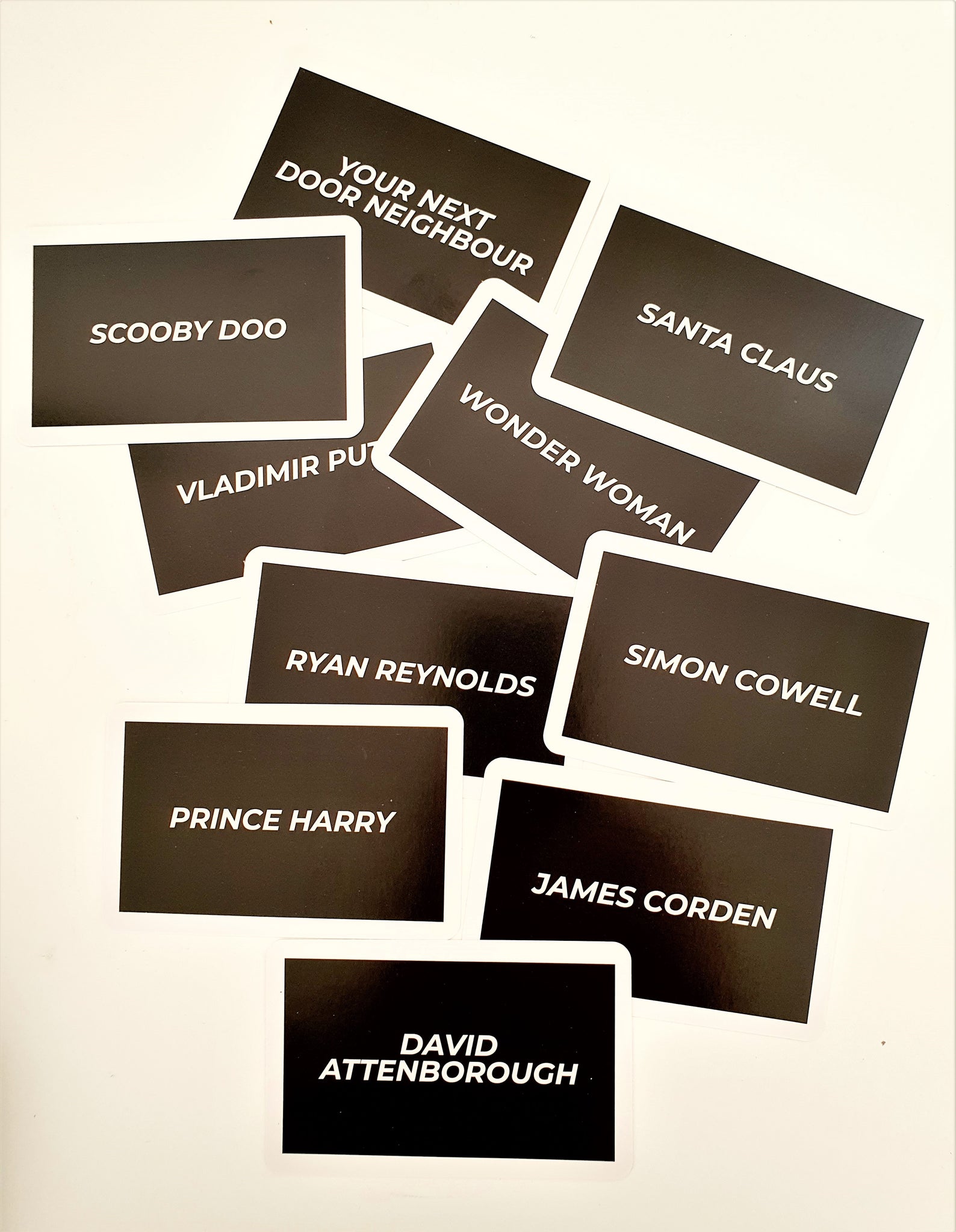 Boxed set of 100 cards with various types of people, from celebrities to family members.