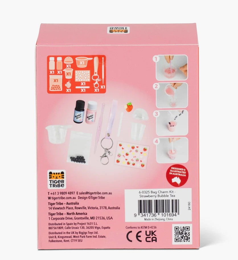This clever little kit contains everything creative kids need to craft their own adorable, little Strawberry Bubble Tea bag charm.