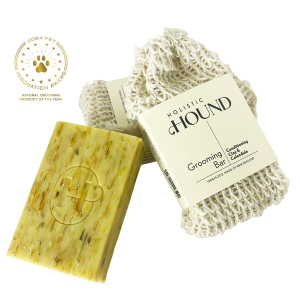 Housed in a compostable sisal bag, it lathers beautifully while gently exfoliating, helping to stimulate natural skin oils for a healthy, shiny coat.
