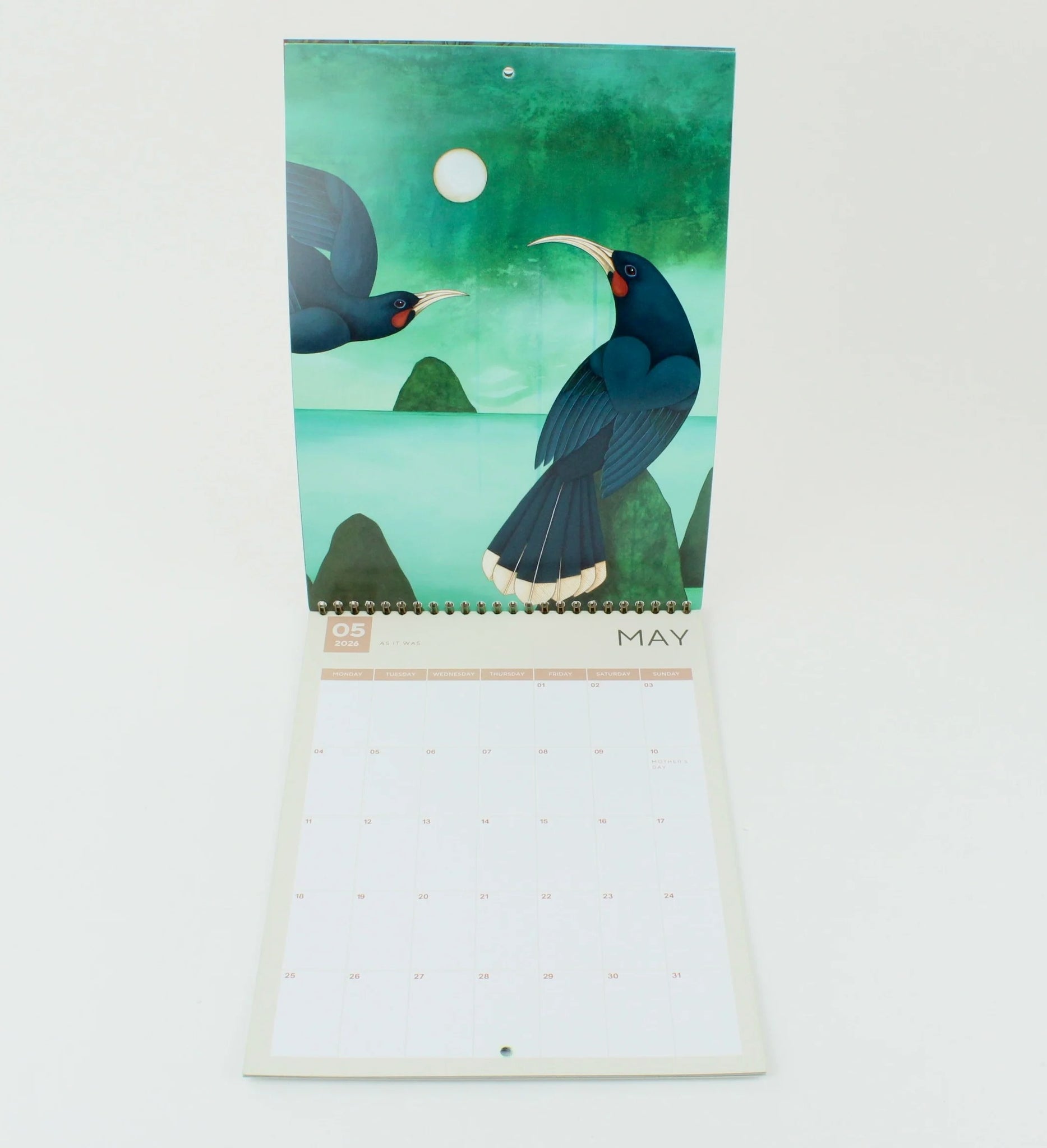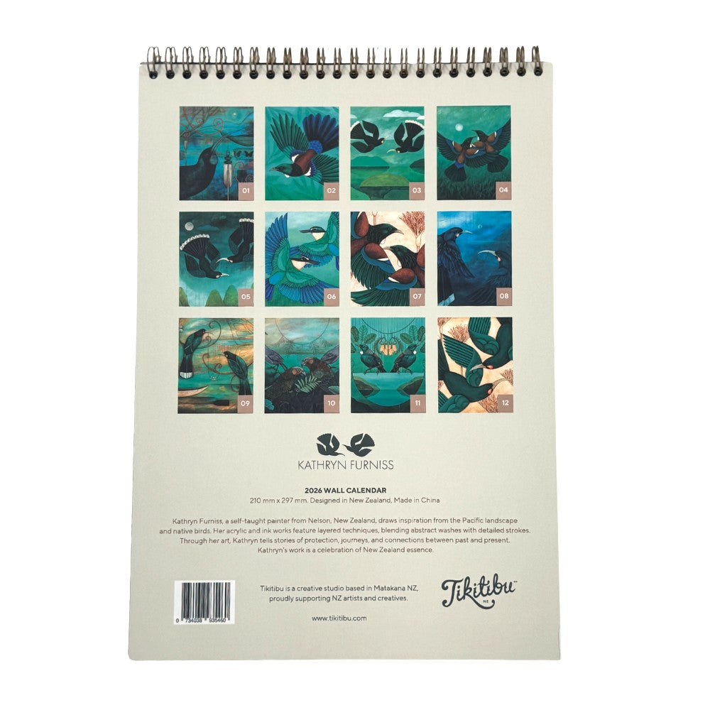 This beautiful wall calendar features 12 handpicked artworks by Kathryn Furniss, a self-taught painter from Nelson, New Zealand.  She draws inspiration from the natural world and each month shows a different stunning painting.