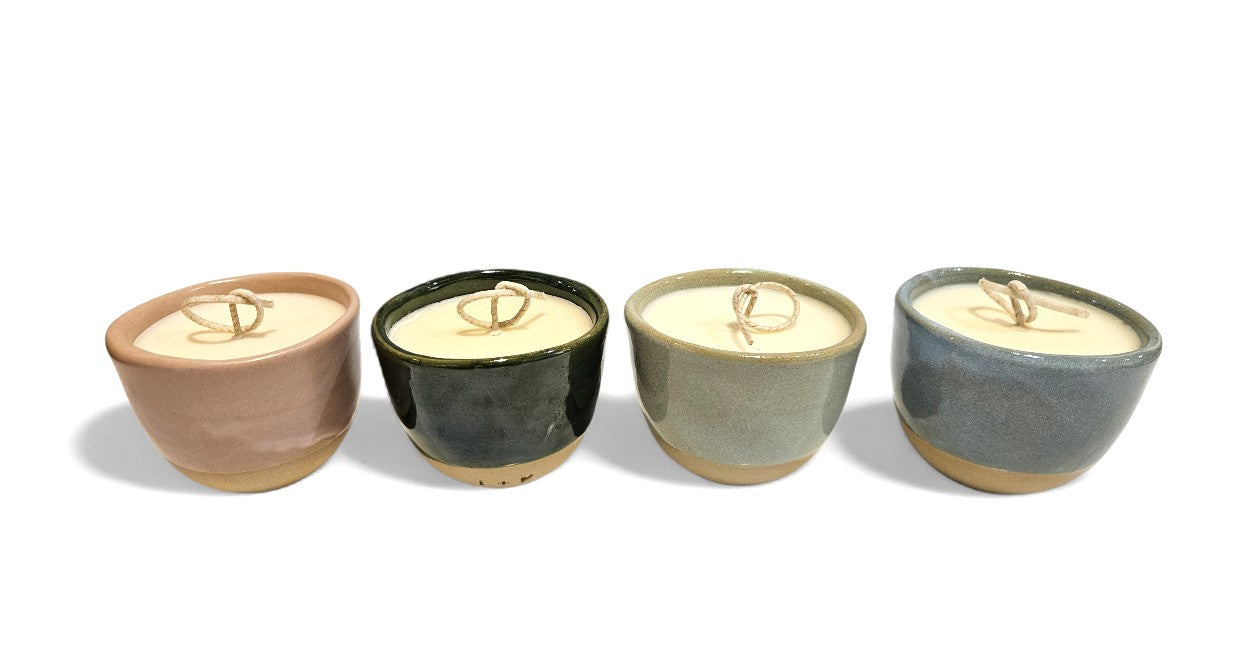 These stunning, simple candles are hand poured into a handmade little ceramic vessel.