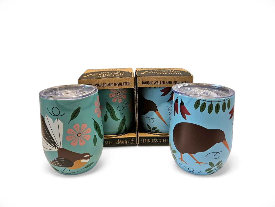 These pretty stainless steel cups feature the Kiwi and the Piwakawaka, both New Zealand native birds.