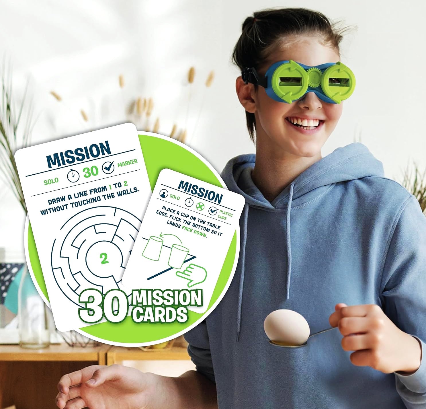 This game is great for kids but also makes for a fun family game night or a memorable gathering with friends.  And don't worry if you wear glasses these vision goggles can fit over them - so everyone can play!